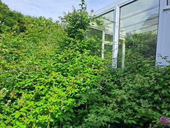 Garage, front and rear gardens (heavily overgrown)