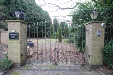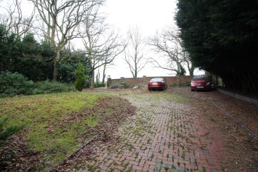 | Gated entrance to driveway, front garden, parking area, double garage (currently partitioned with staircase to store room and shower room) and rear garden (overgrown) |