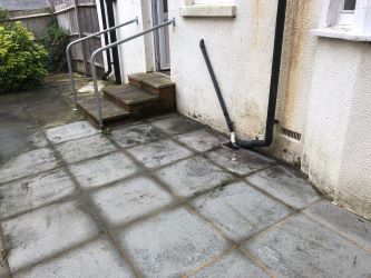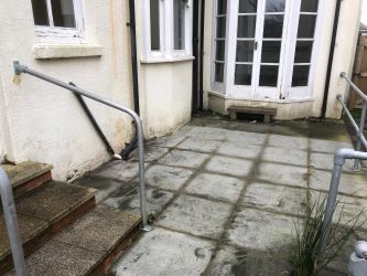 Rear patio and rear garden area (overgrown)